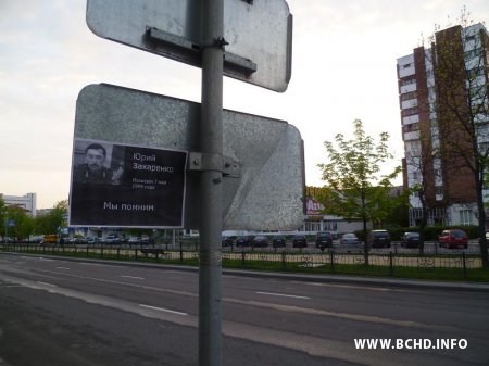 У розных шматлюдных месцах месцах гораду яны распаўсюдзілі ўлётку з надпісам “Юрий Захаренко. Похщен 7 мая 1999 года. Мы помним”.